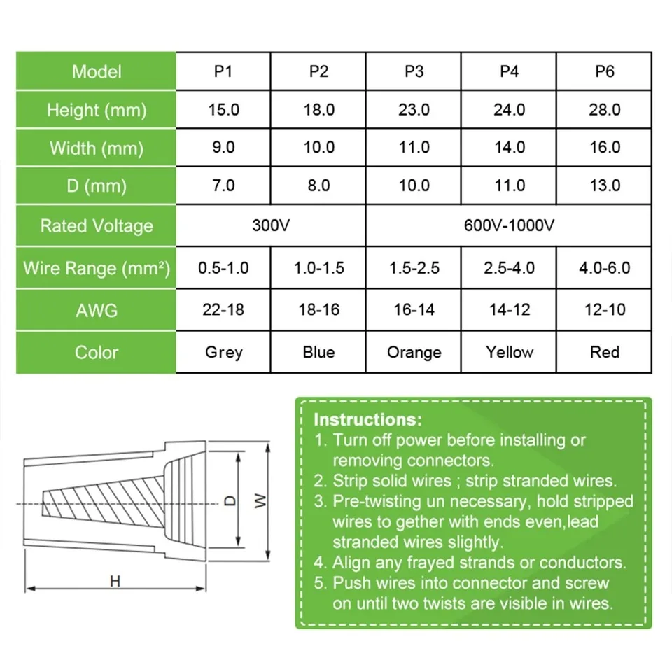 345PCS Crimping Cap Fast Wire Connector Electrical Insulated Twist Crimp Terminal AWG22-10 Nut Spring End Cap Rotating Splicing