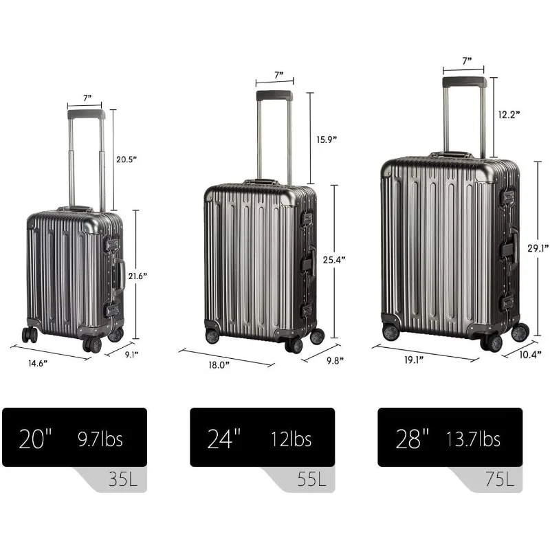 All Aluminum Carry On Luggage With TSA Locks Fashion Cool Metal Hard Shell Spinner Suitcase (Grey, 20 Inch)