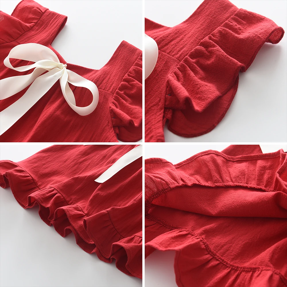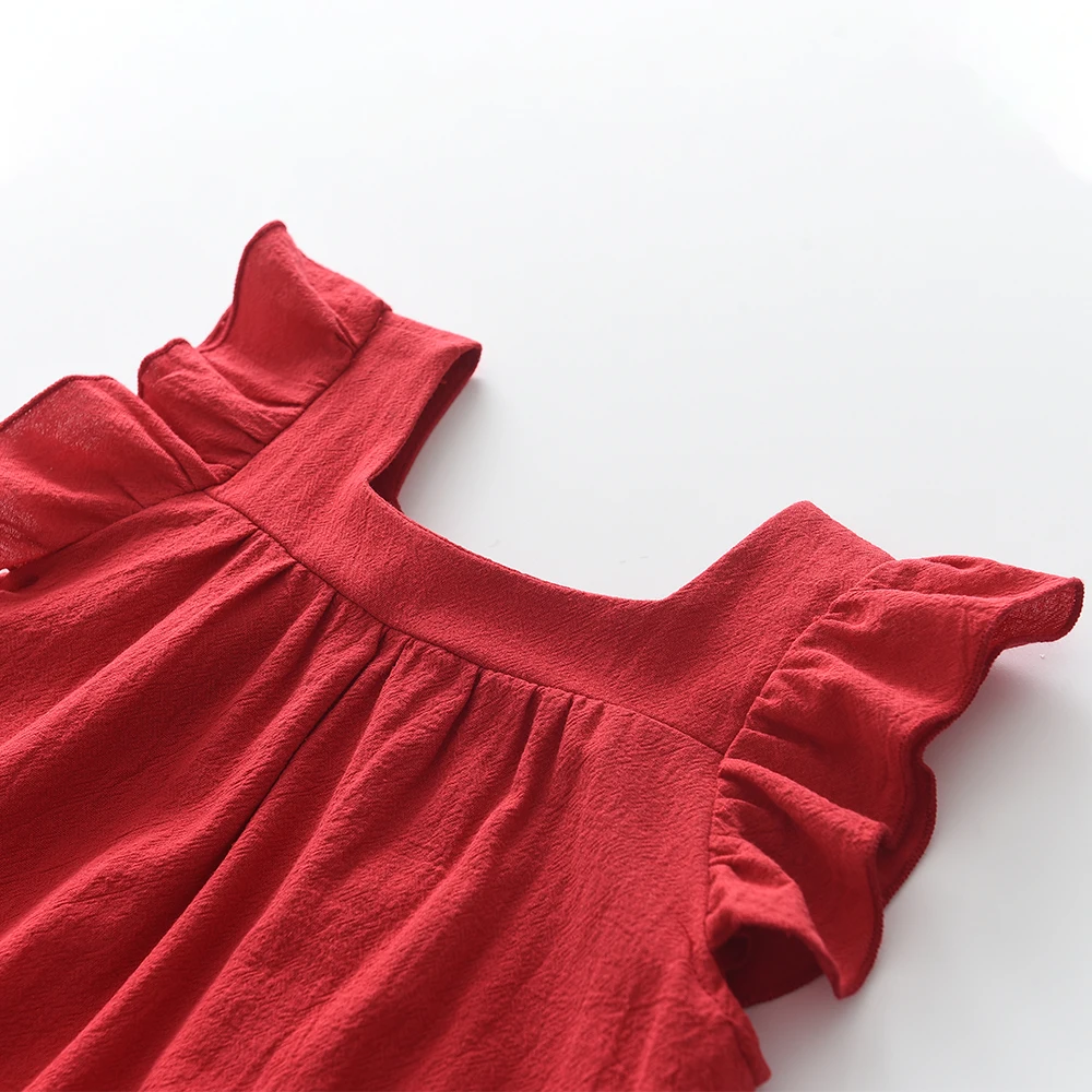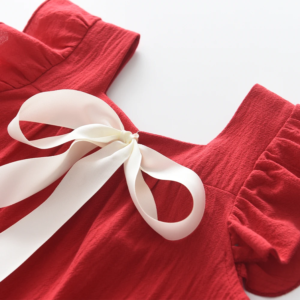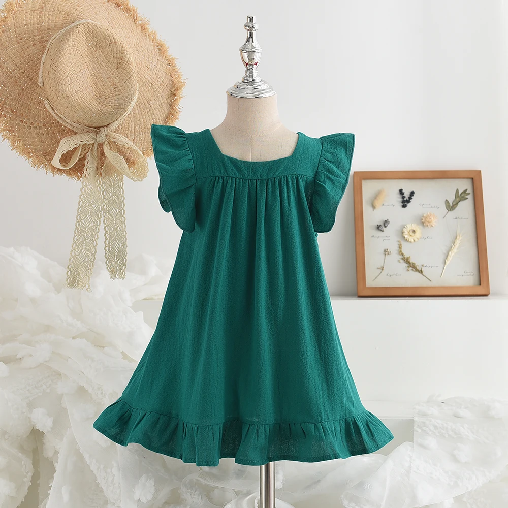 Bear Leader Summer Girls Dresses Flying Sleeve Dress Casual Ruffled Dresses Solid Back Bowknot A Line Baby Dresses Kids Clothes