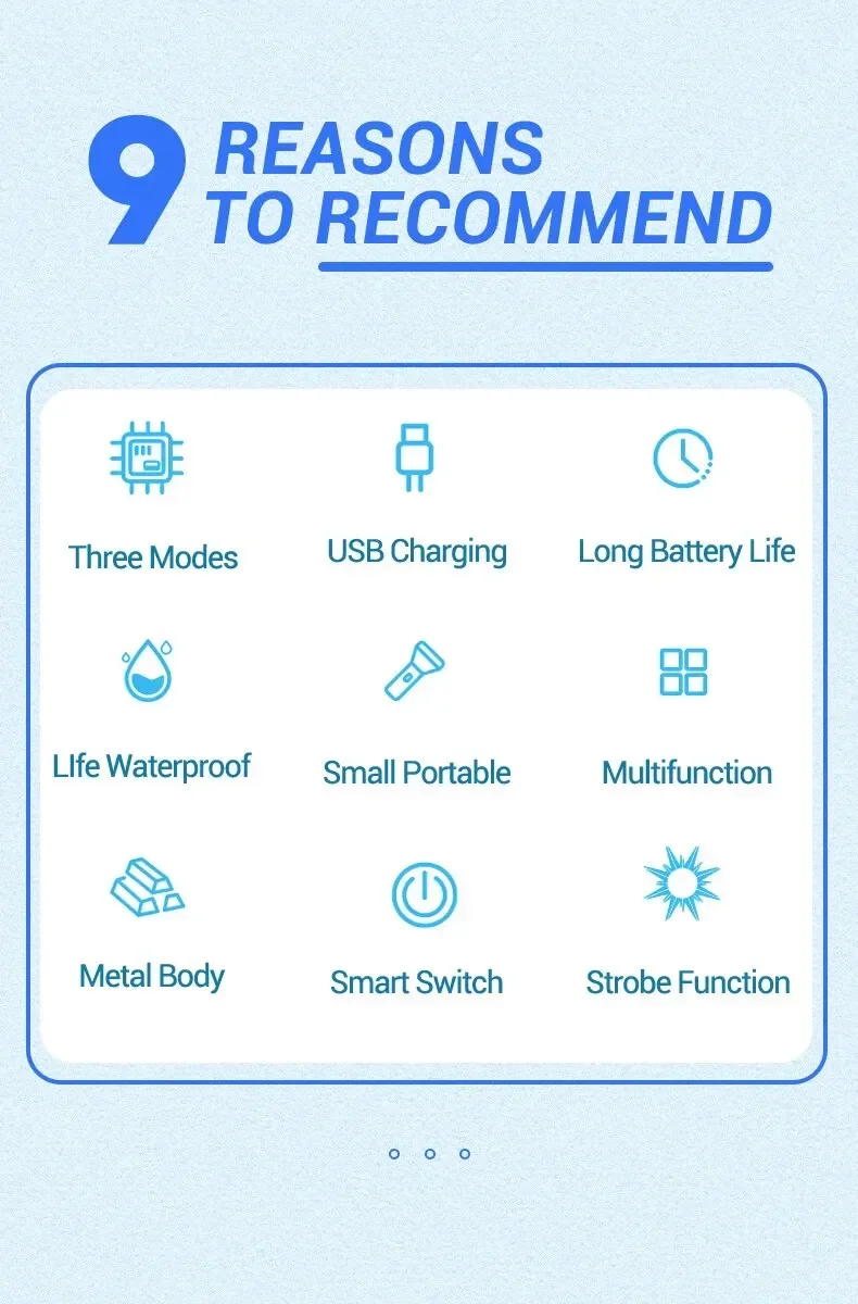 3 Light mode: strong-weak-burst flash (Switch button, one key to switch the light gear)