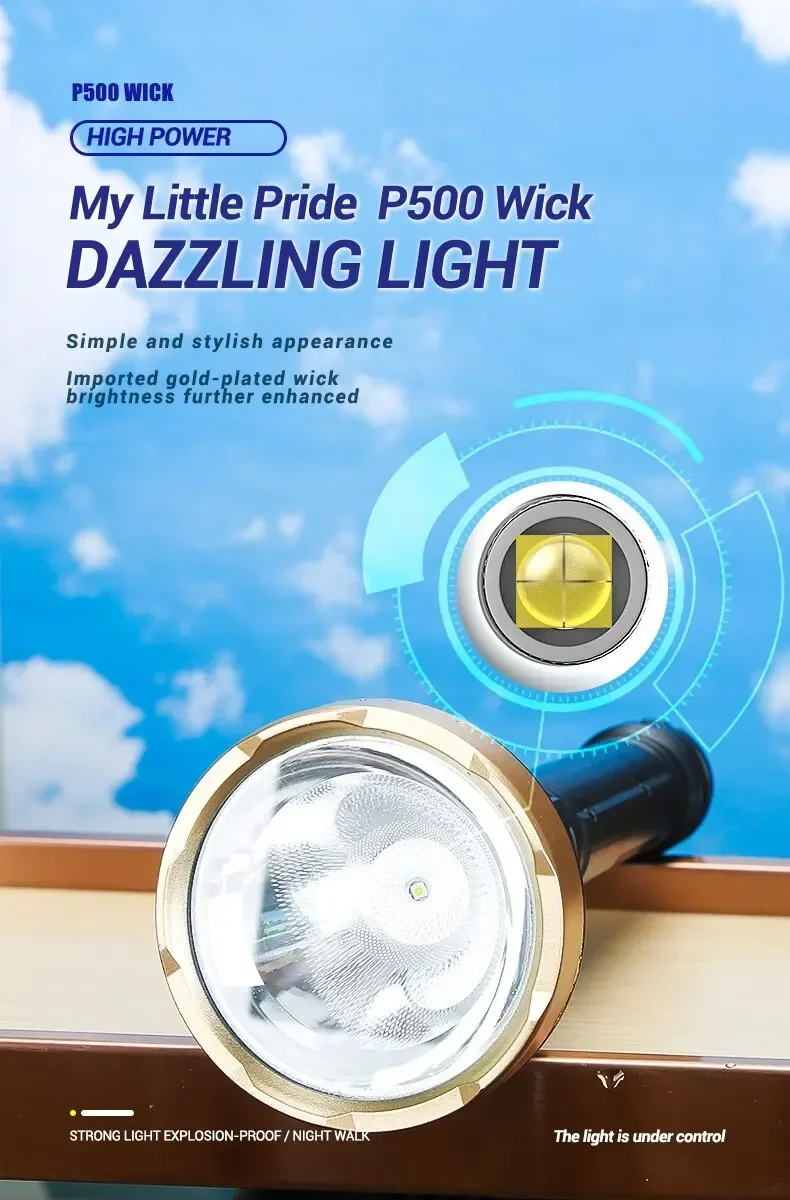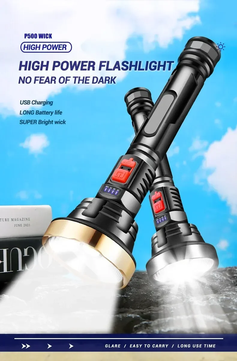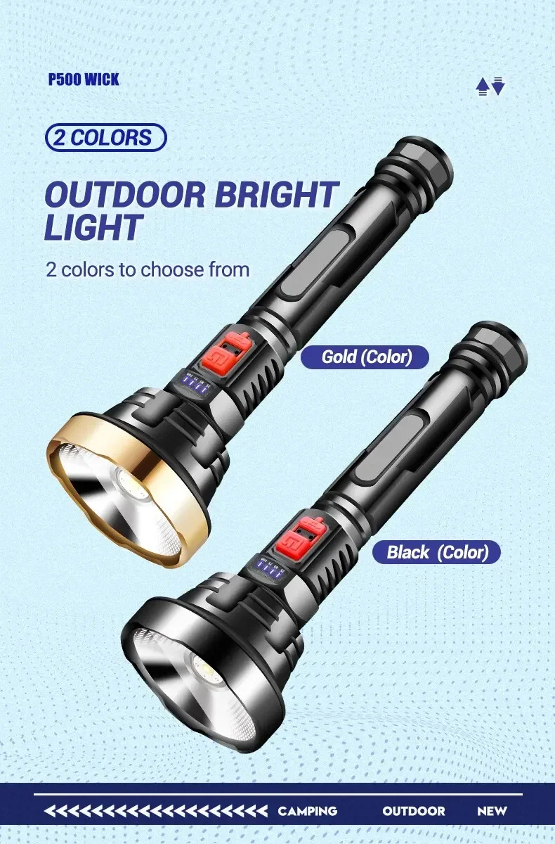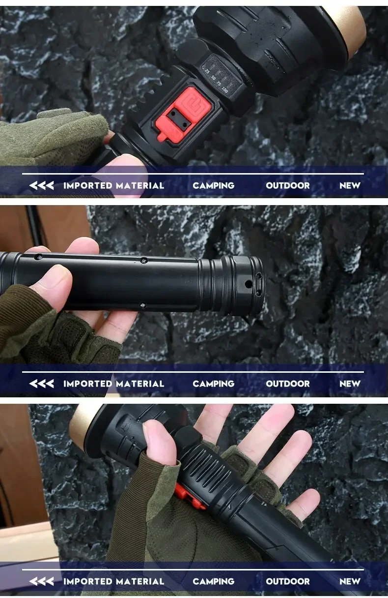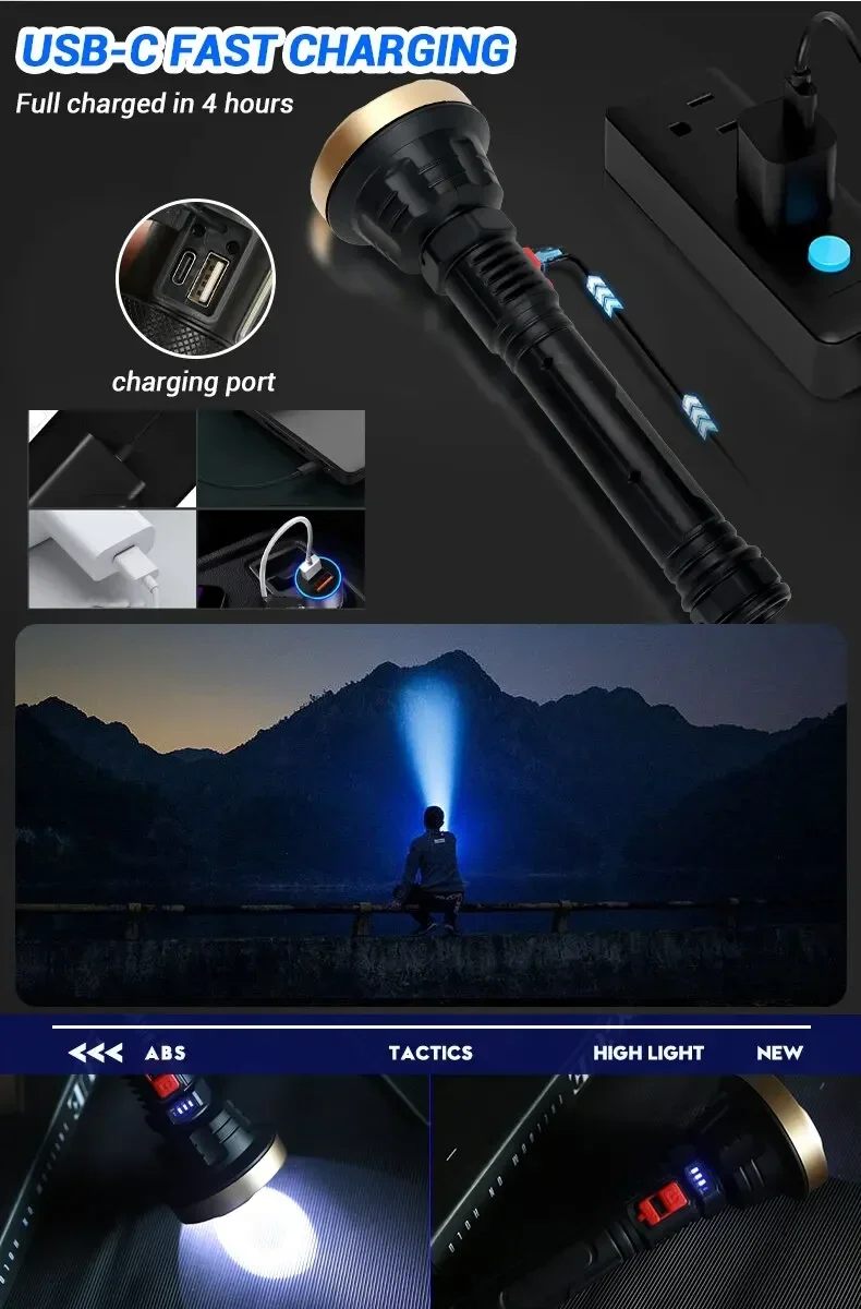 Big Strong Light LED Flashlight USB Rechargeable Tactical Hunting Camping Lantern Built in Battery Flash Light Power Display