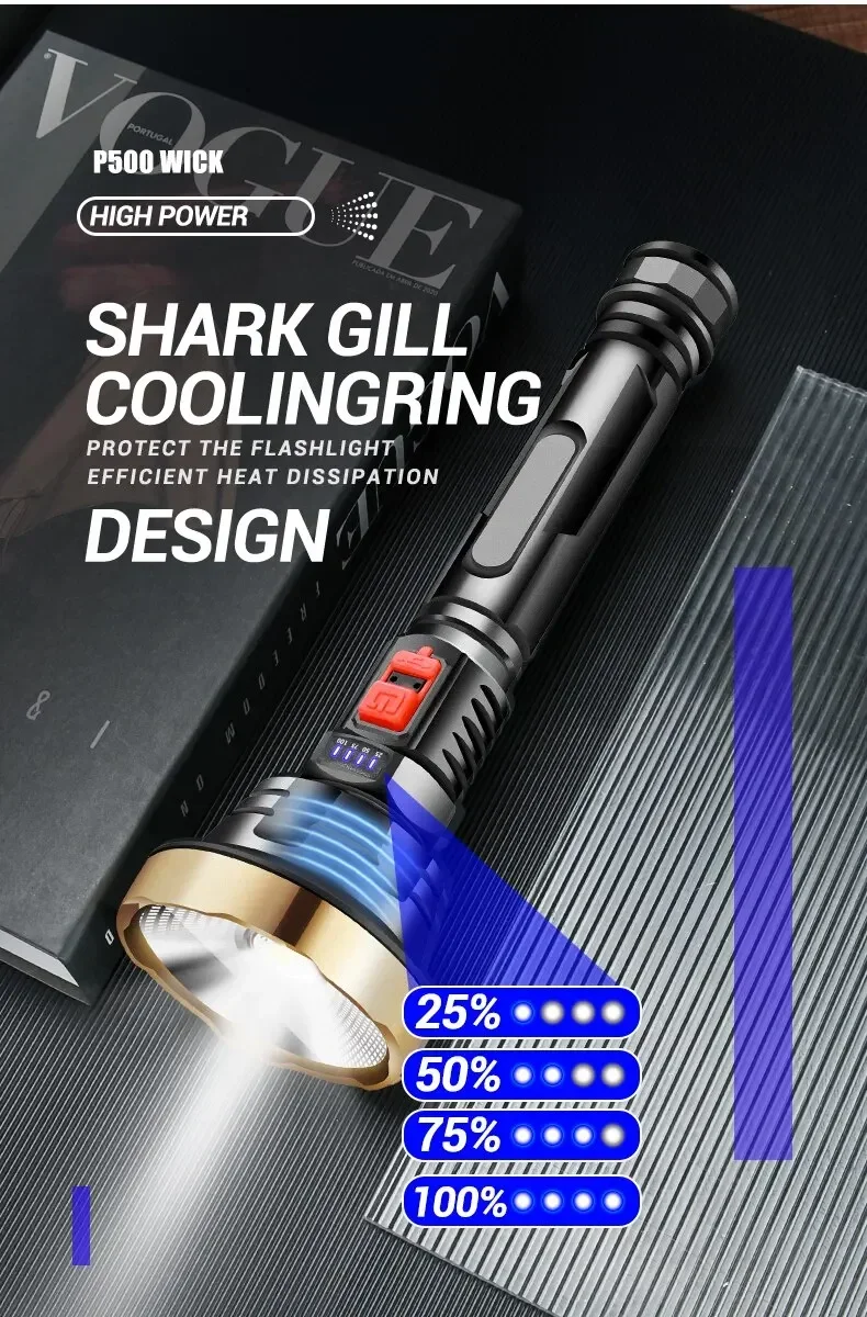 • Rechargeable and Power Display :Equipped with a built-in battery, this flashlight is USB rechargeable, ensuring long-lasting use and with its power display feature, you always know your device's battery level.