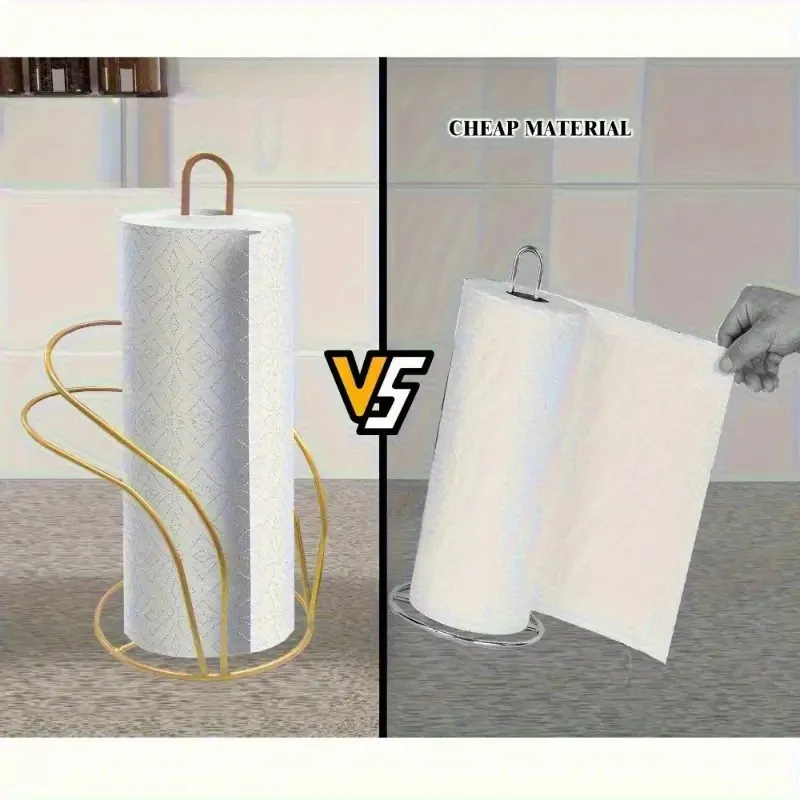 Elegant Black/Gold Metal Countertop Paper Towel Holder with Reinforced Base - Ideal for Kitchen & Bathroom, Kitchen Organization