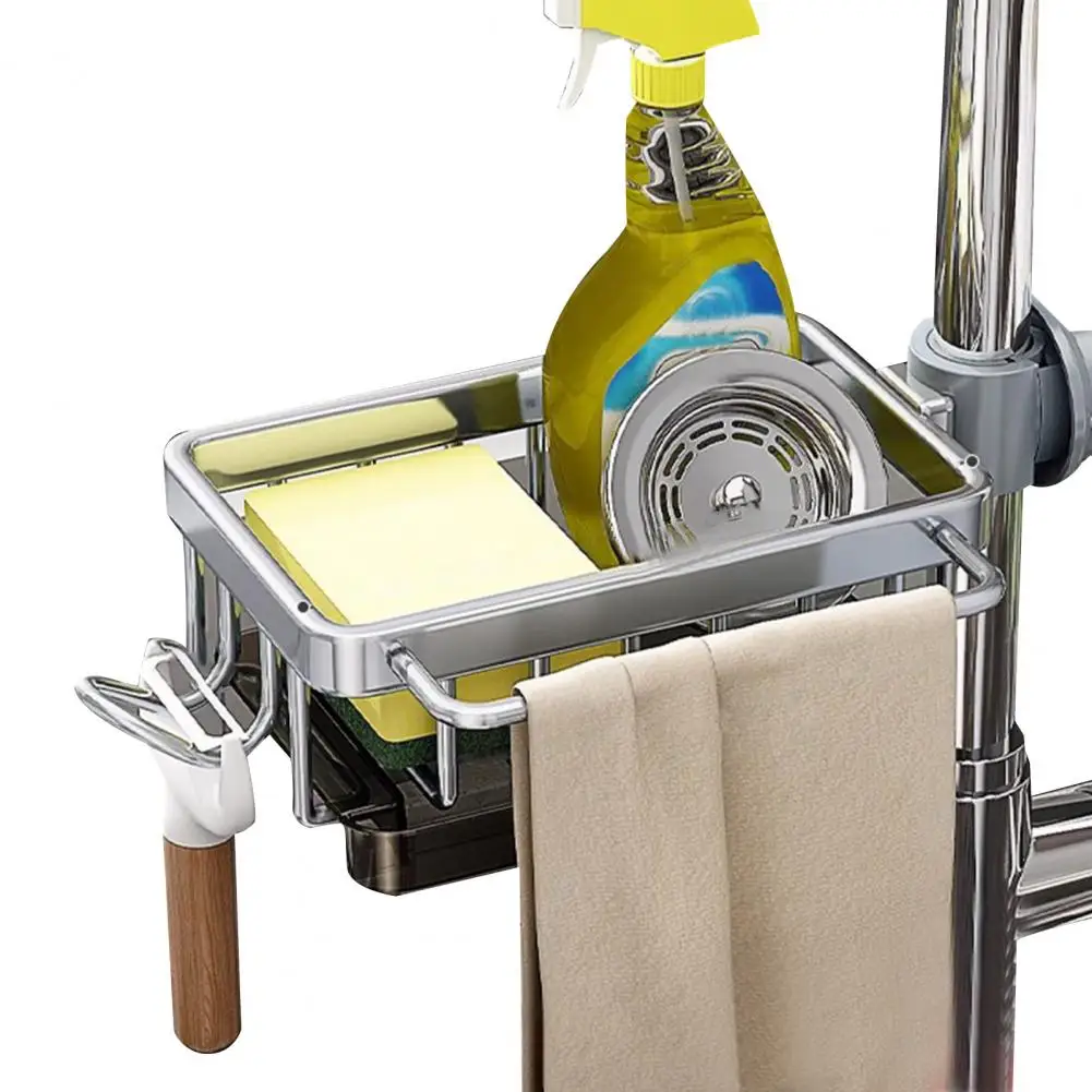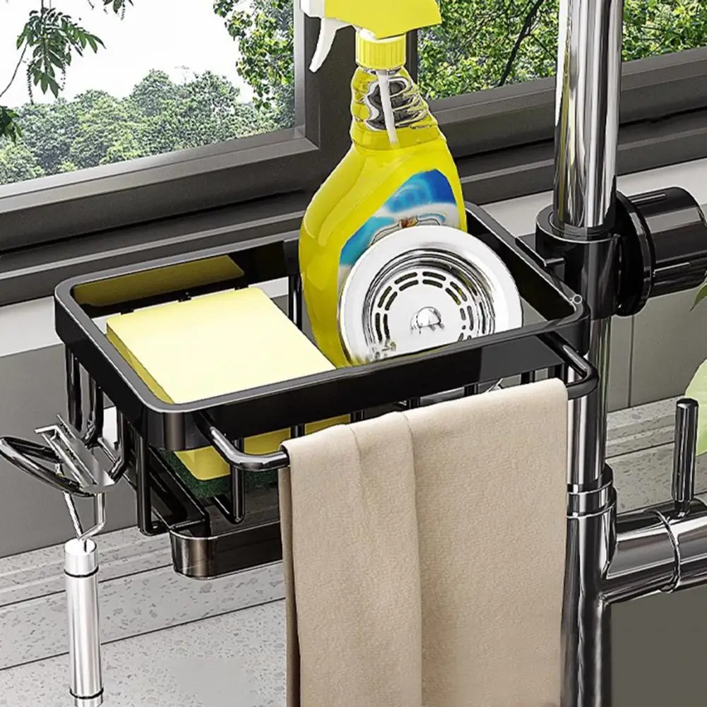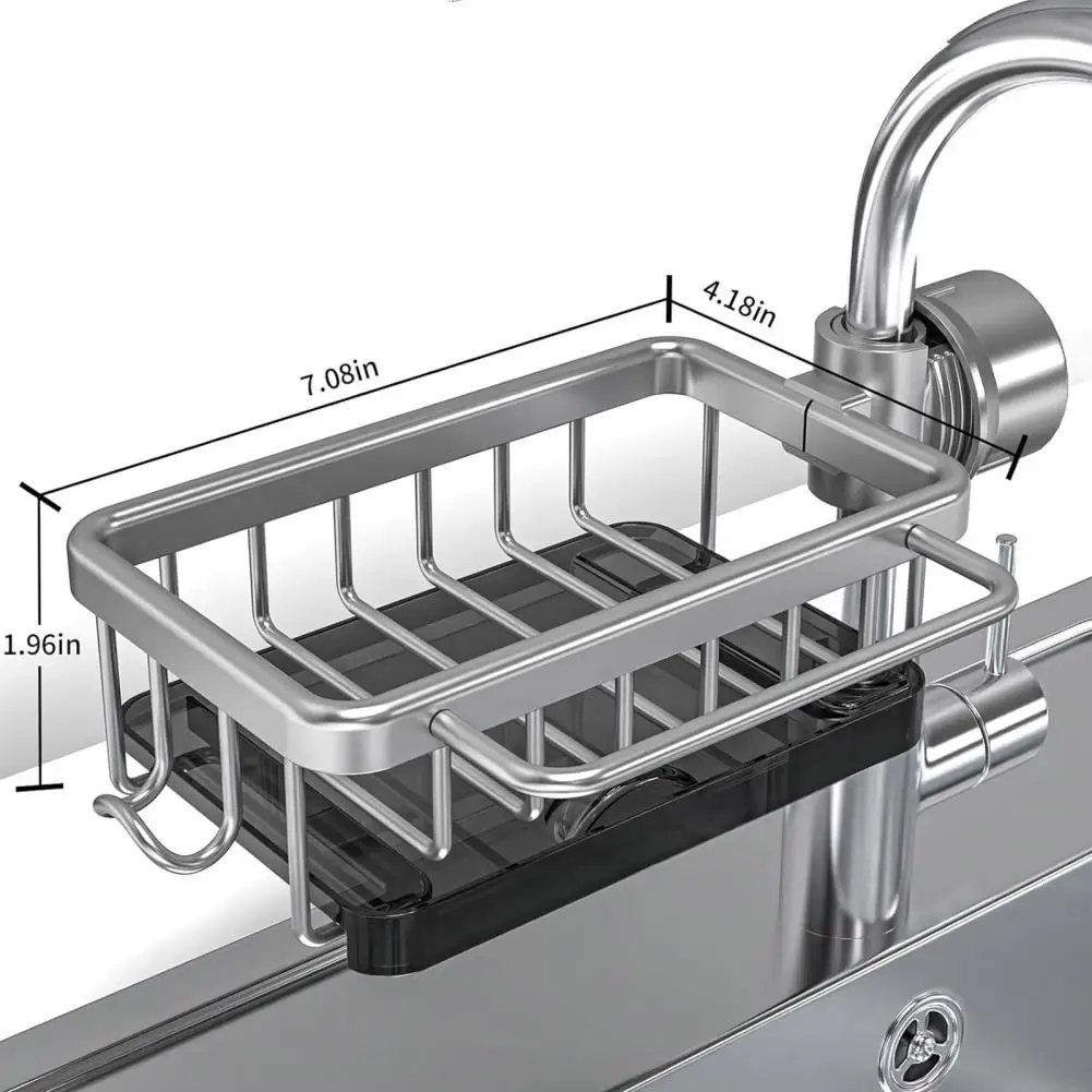 Faucet Drain Rack Sponge Dish Soap Holder Hanging Kitchen Organizer Rack with Hook Strong Load-bearing Kitchen Sink Organizer