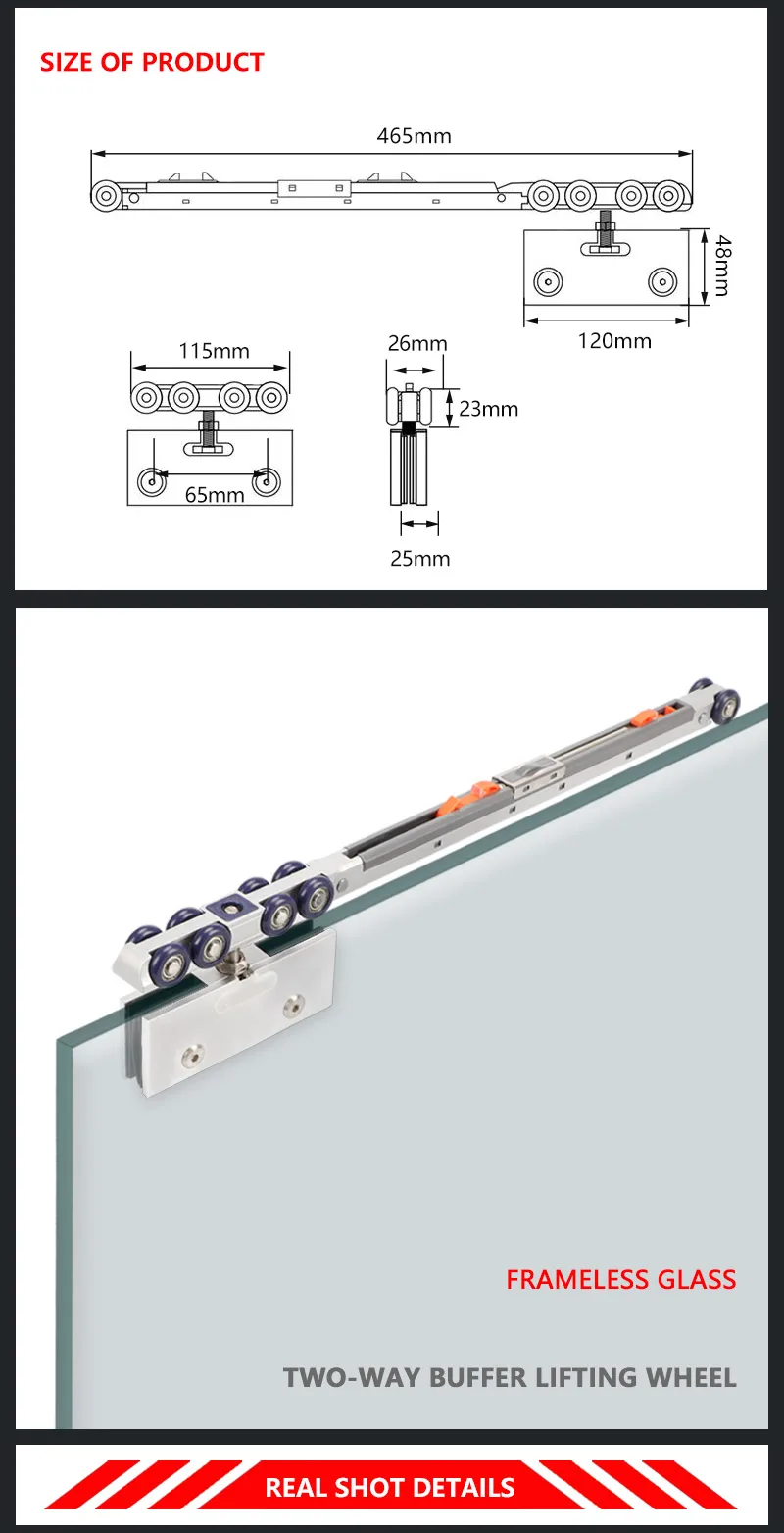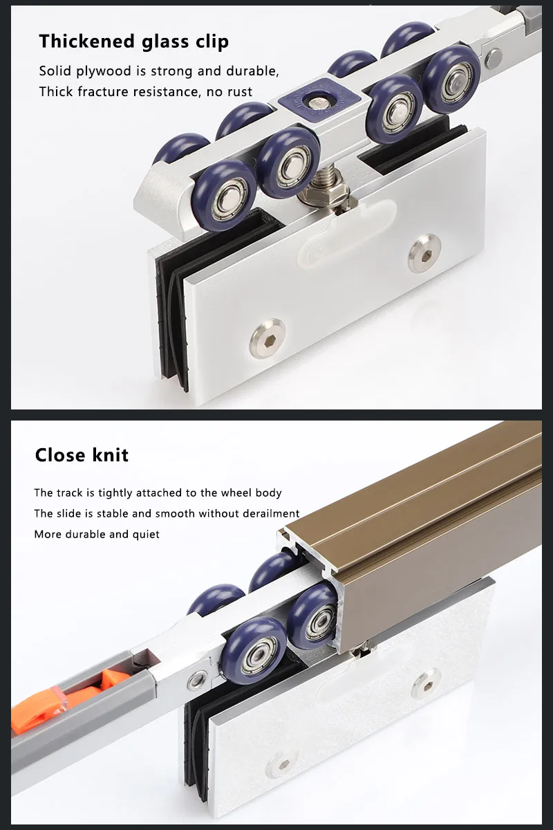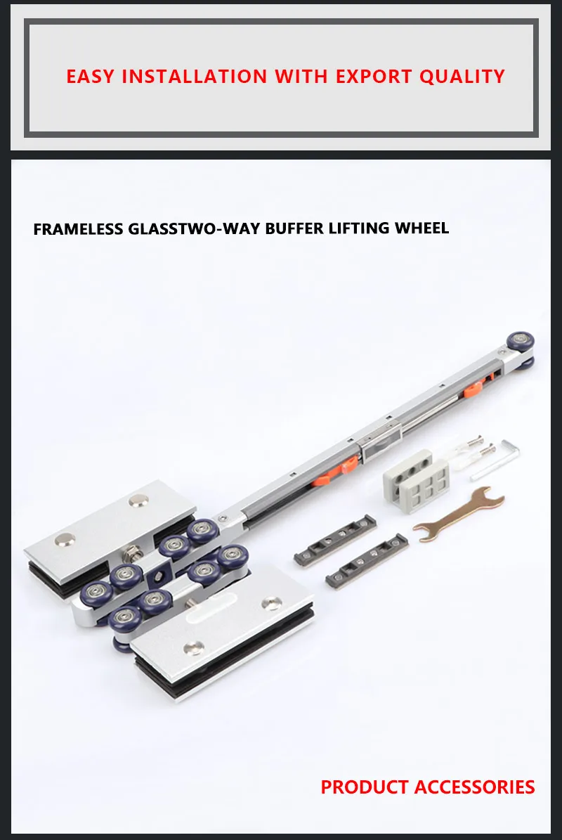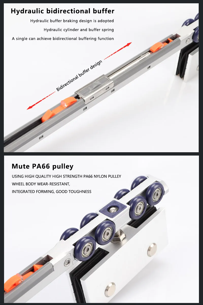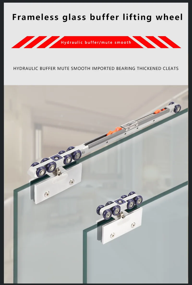 Glass Door Lifting Wheel Bathroom Room Pulley Sliding Door Toilet Two-way Damping Buffer Glass Pulley Moving Door Track Fittings