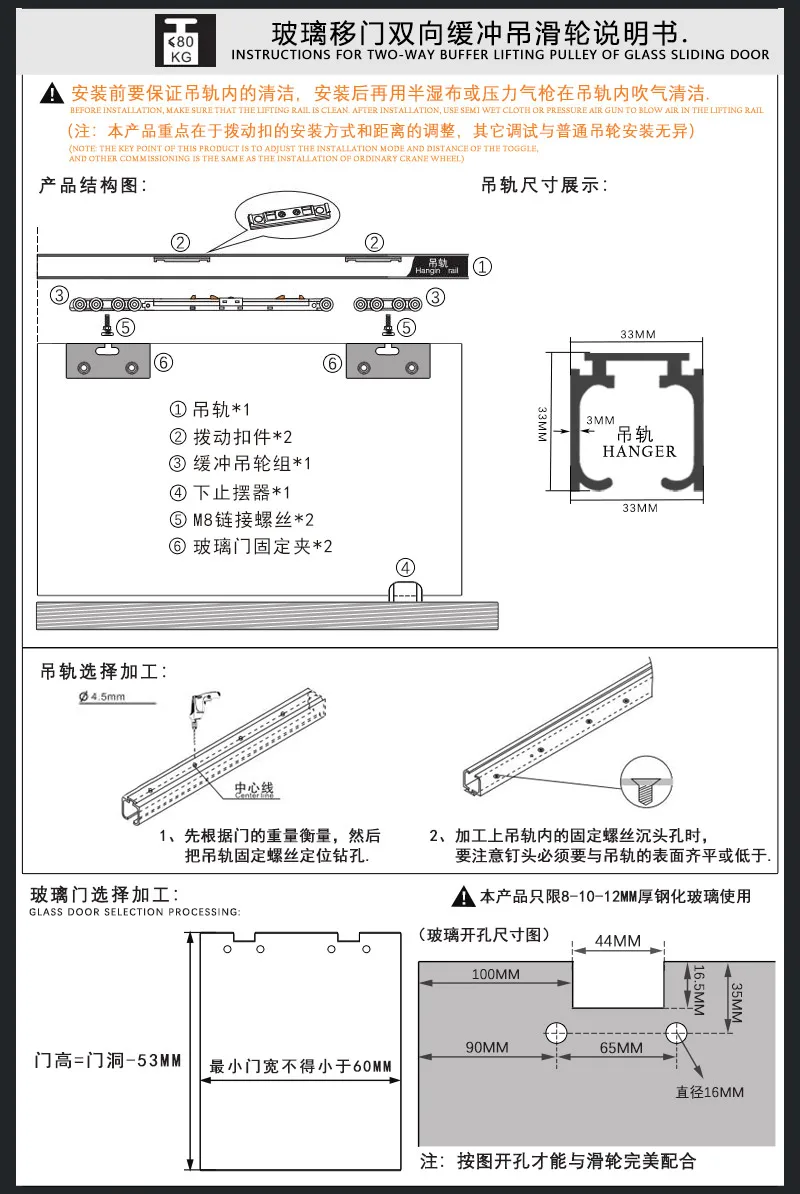 Suitable for door thickness: 8-12mm glass, door width of more than 60mm