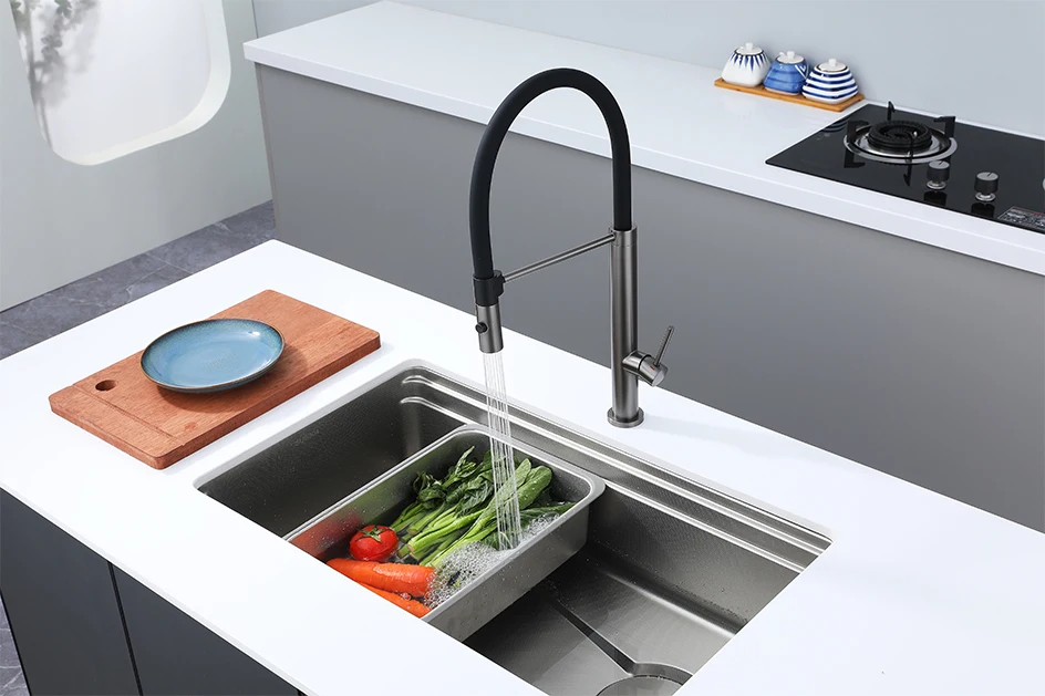 Meet daily kitchen cleaning needs, switch between different water outlet modes with buttons Comes with clearrly and children at home can use it.
