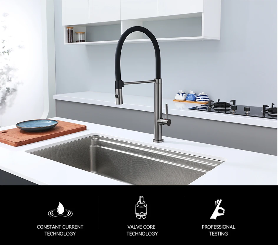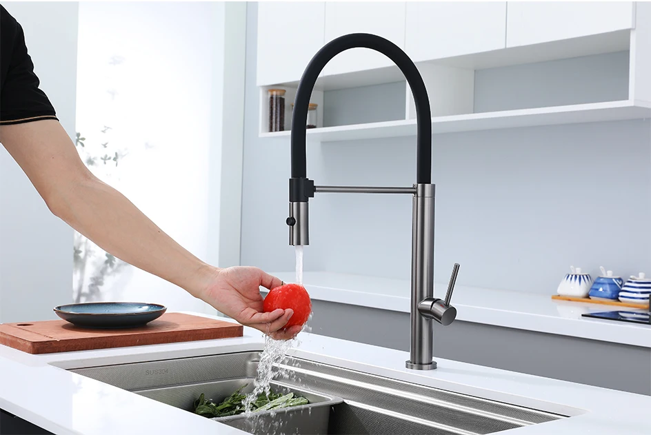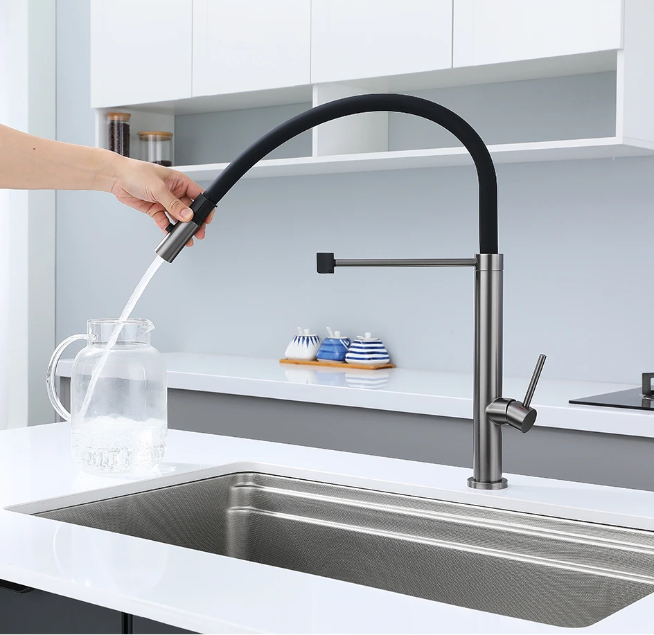 Kitchen Faucet Sink Faucets Rubber Pull Down Stream Sprayer Taps Stainless Steel 304 Rotatable Kitchen Mixer Water Tap Crane