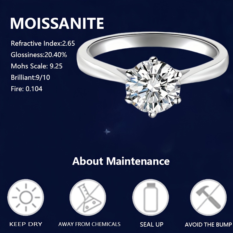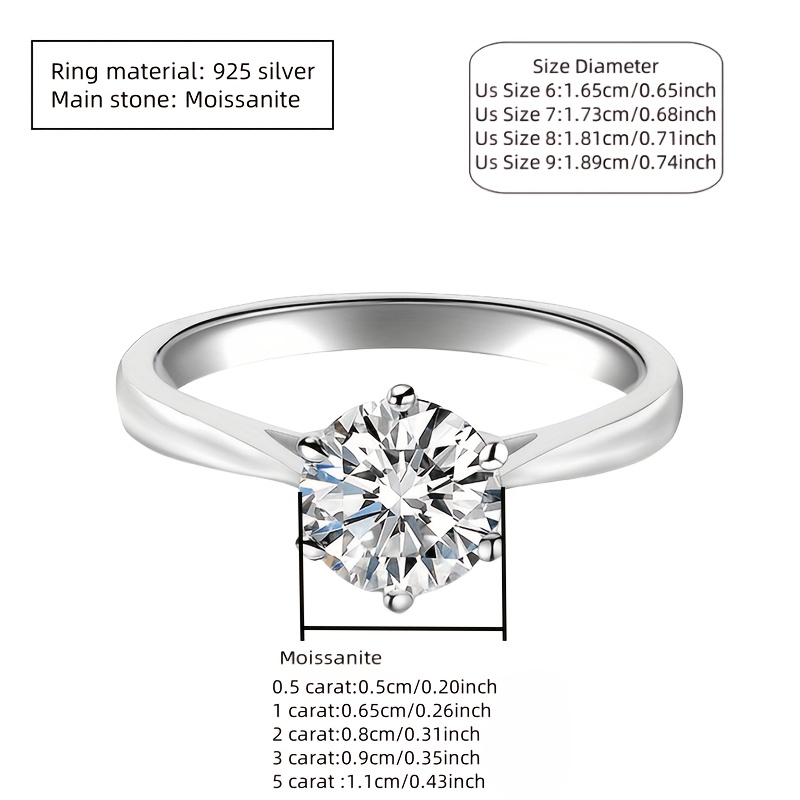 New Women'S One-Carat 925 Silver Moissanite Ring Plated with Tp950.