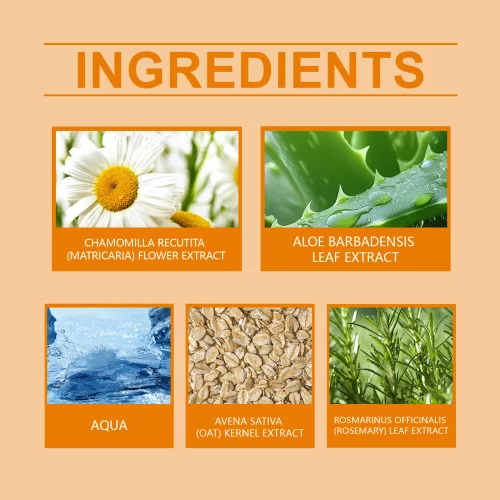Composition | Oat extract, aloe leaf extract, rosemary leaf extract |