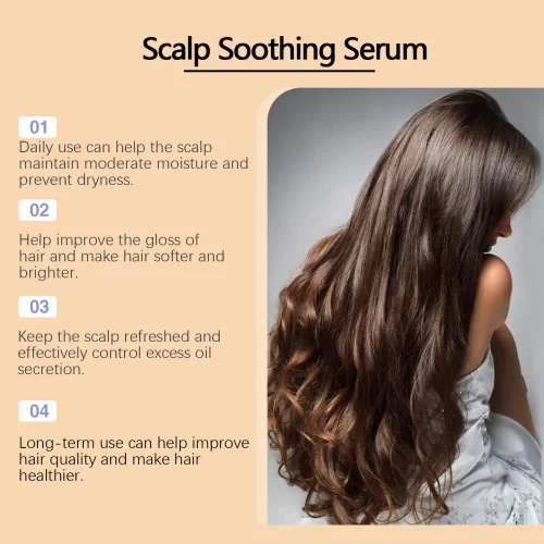 Our scalp serum contains aloe vera leaf extract, rosemary leaf extract. It can provide a long-term scalp moisturizing effect and reduce dryness and itching. Its application method is very simple: thoroughly clean the scalp and hair, and dry it, apply an appropriate amount of this product evenly on the scalp, gently massage to promote better absorption. And can effectively relieve the tightness of the scalp. Helps relieve head discomfort.