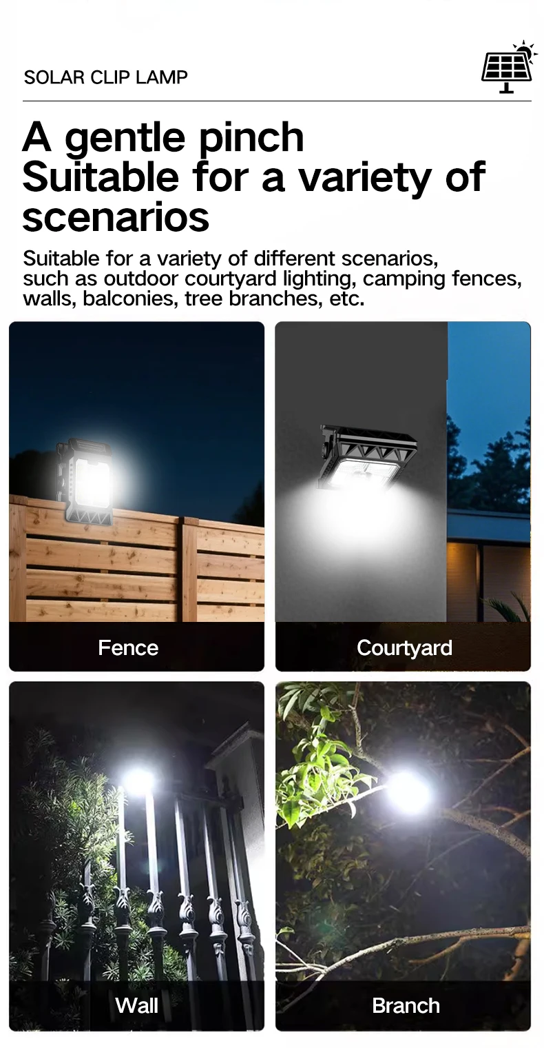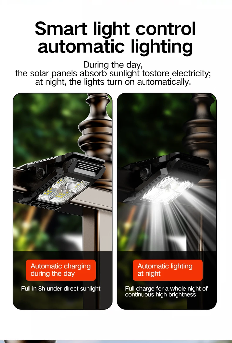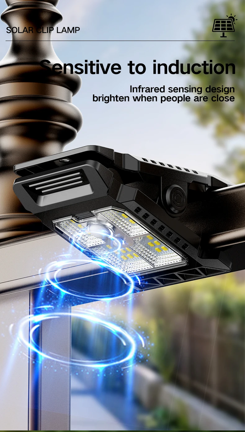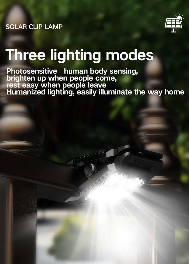 Outdoor Solar Clamp On Motion Sensor Lights Waterproof Work Light 3 Lighting Modes Camping Lamp Fence Walls Garage Led Lamps