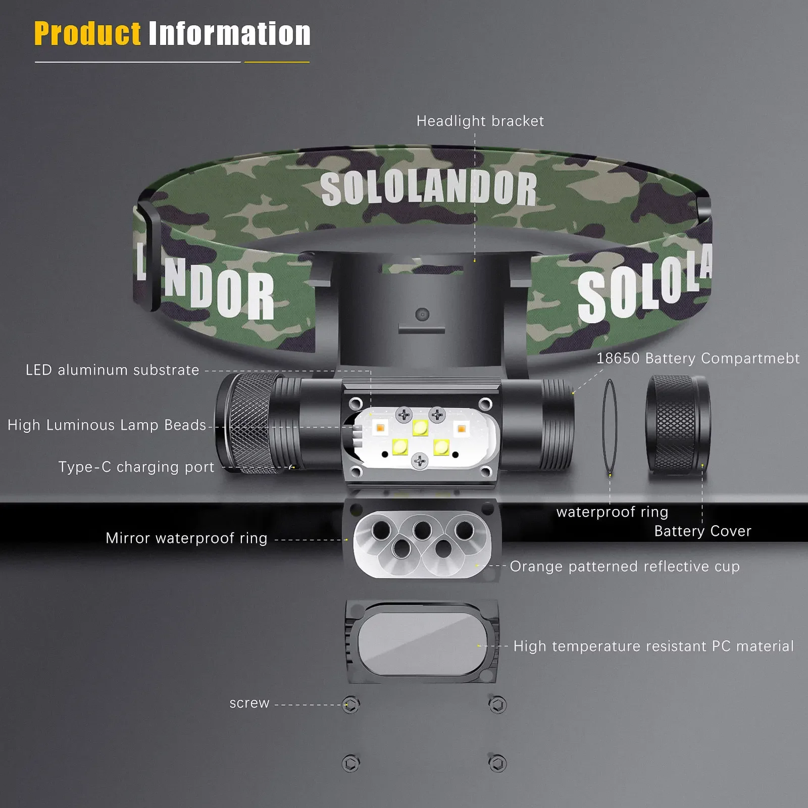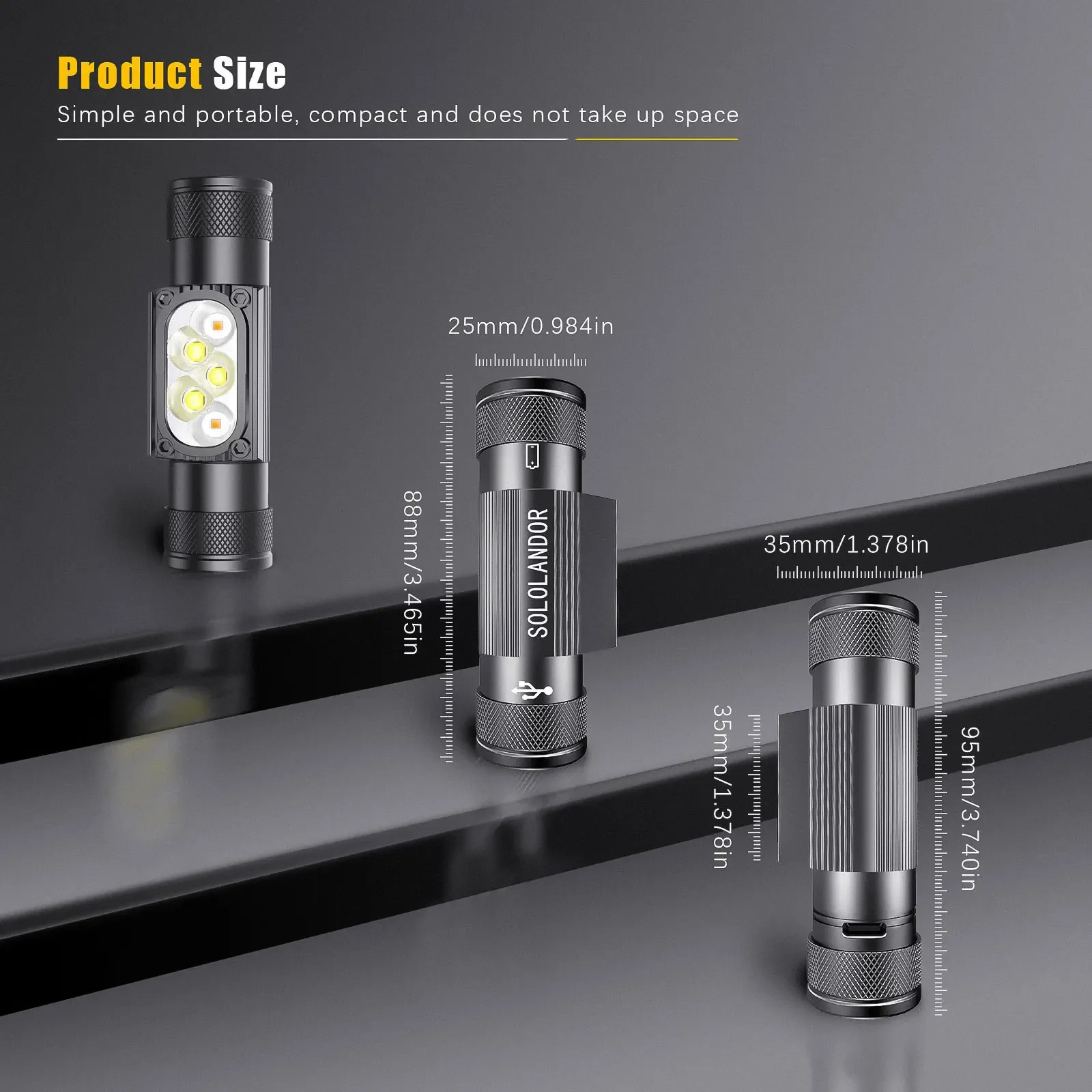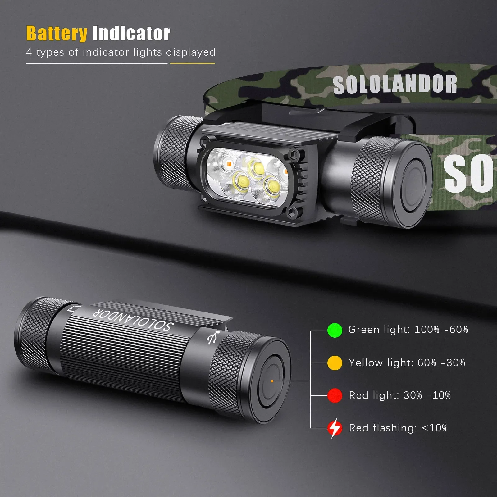 SOLOLANDOR White Yellow LED Outdoor exploration lighting flashlight USB rechargeable flashlight 18650 Battery