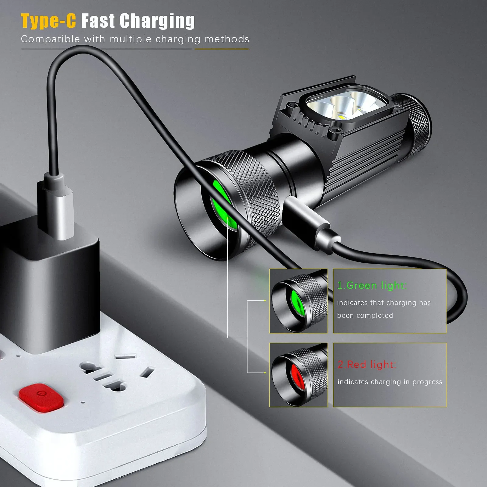 ☀Flashlight body:aluminum alloy, anti-abrasive finish to get solid built body, anti-crash geometry and better heat exchange