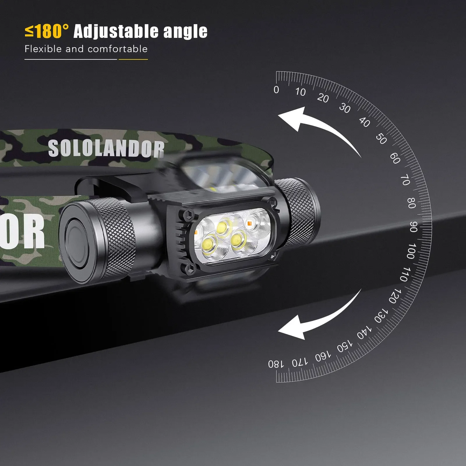 HD35BY-Yellow is a professional, bright angle-head flashlight and toollamp, designed for multiple indoor and outdoor activities like camping, hiking, fishing or hunting. With the supplied headband it can also be used as a headlamp. It is powered by a single 2500mah 18650 lithium-ion rechargeable battery, is rechargeable via USB Type-C,Moreover, HD35B-Yellow comes with an adjustable elastic strap,