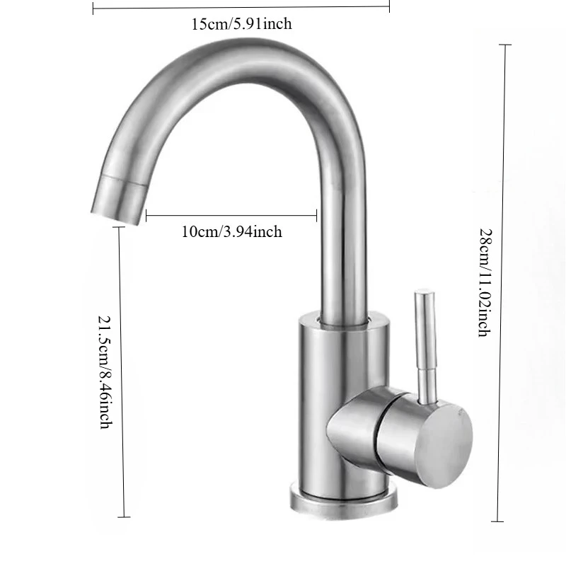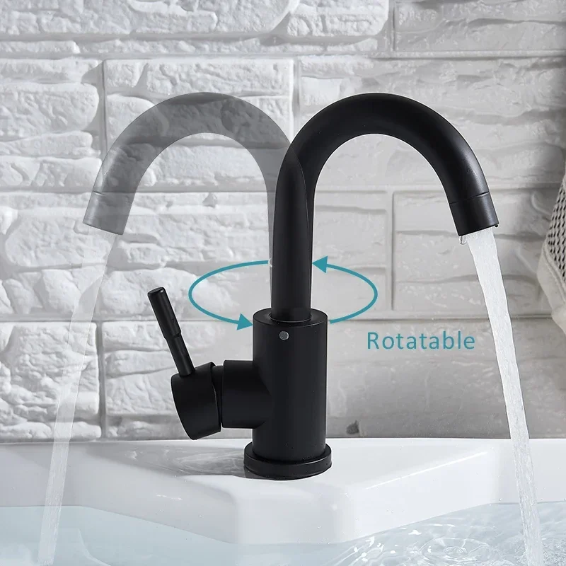 Stainless Steel Hot and Cold Water Mixer Tap, Single Handle Bathroom Faucets, Deck Mounted, Household WashBasin Sink Tap