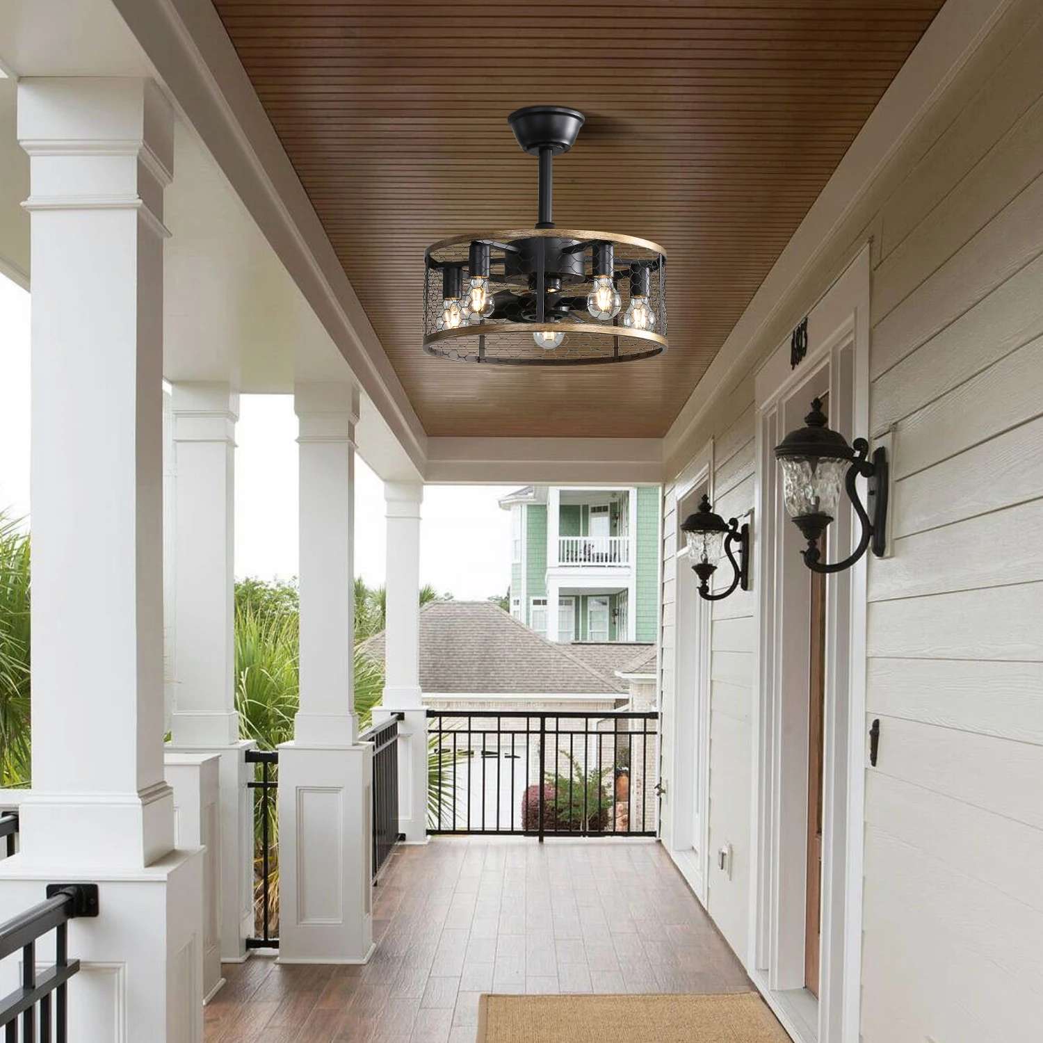 USA in Stock E26 20 Inch 7 ABS Blade Cage Ceiling Fan Simple Mute Ceiling Fan Light With Remote Control