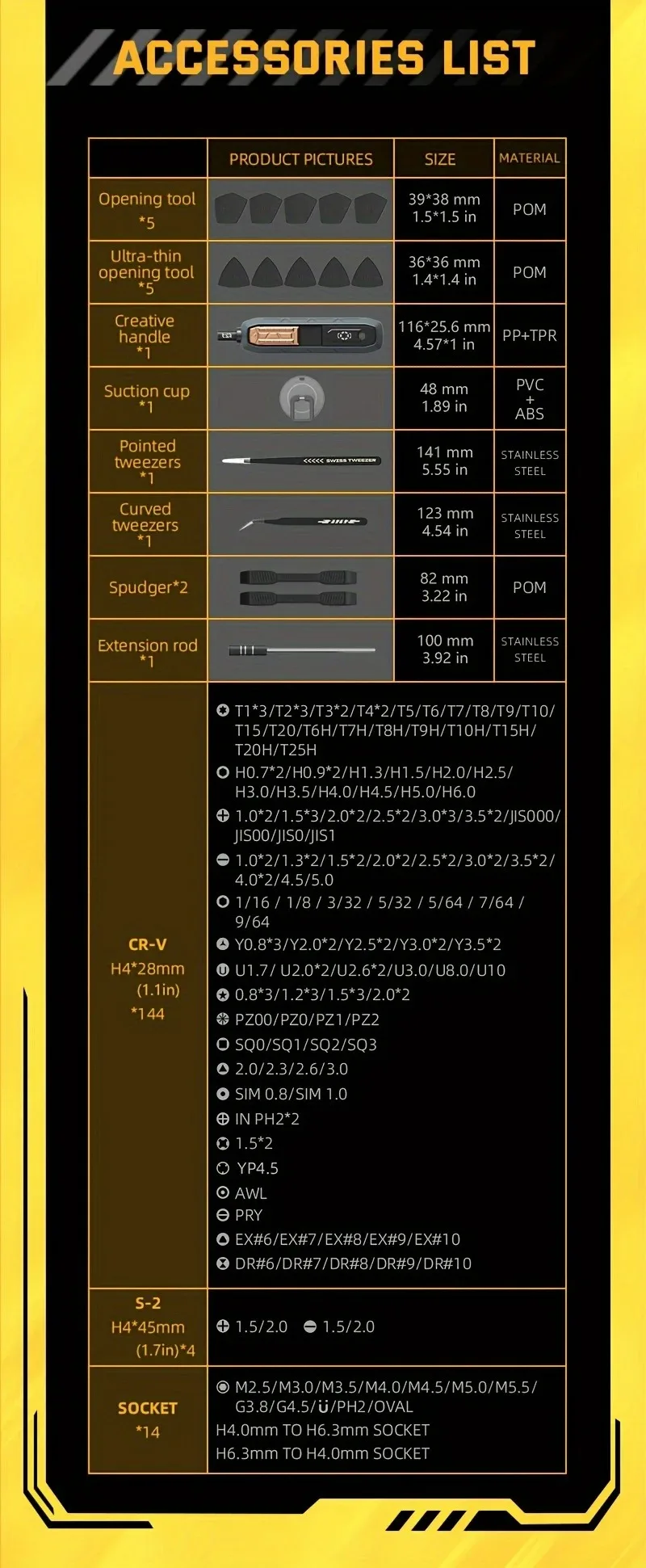 tool includes: Hand Tool