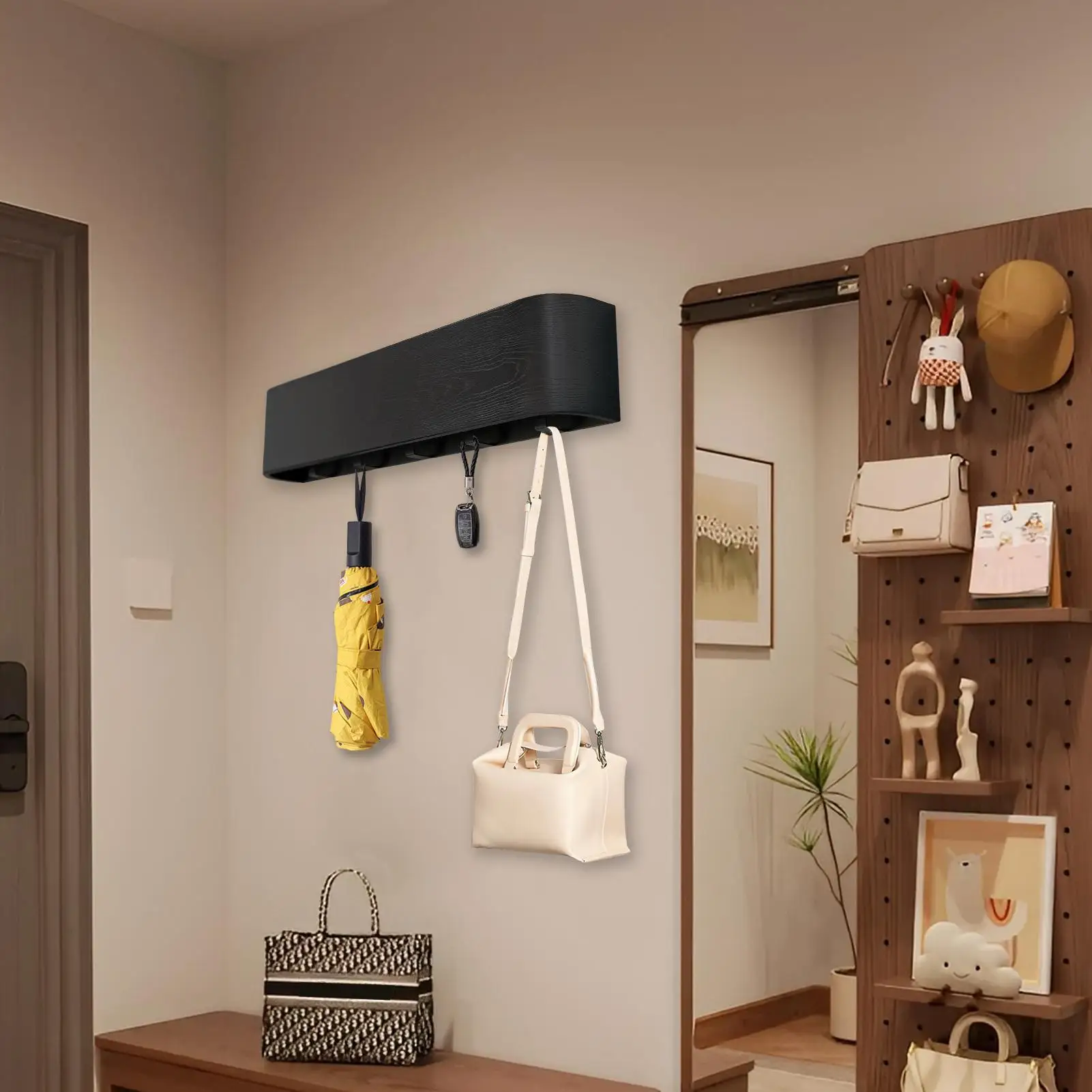 4.Space-Saving Wall Rack: This coat rack for wall includes foldable hooks to instantly store hats, scarves, keys, and more, creating additional storage in compact areas such as dorms or business without occupying valuable floor space